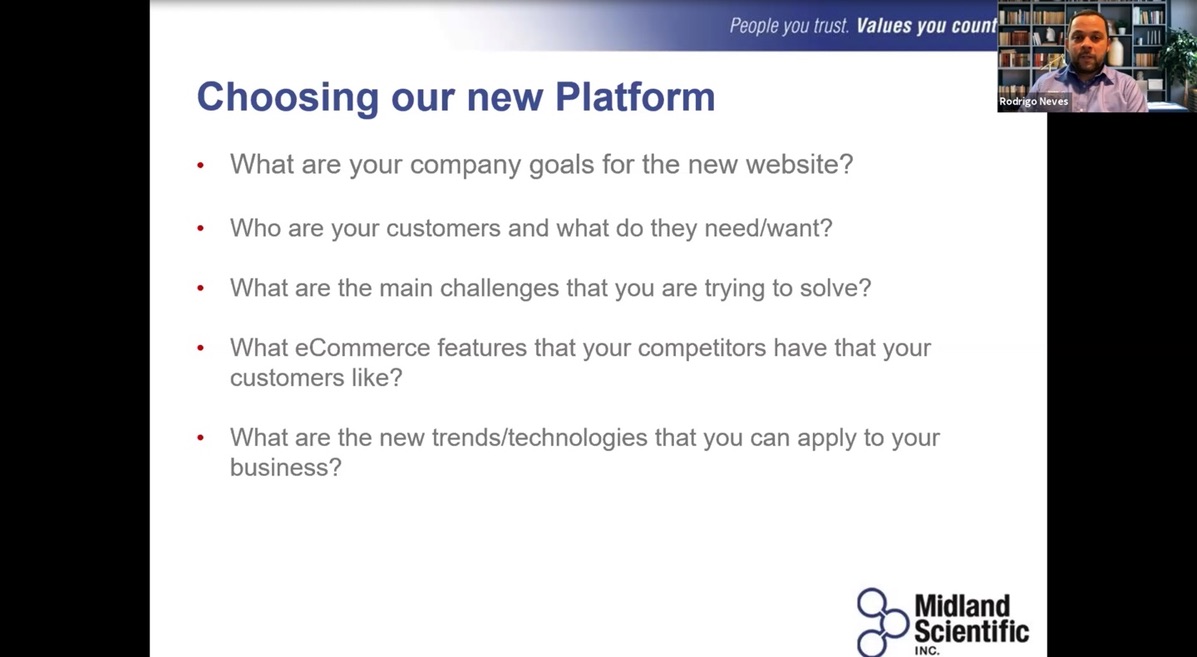 With over 45 years of service, Midland Scientific is a nationwide, full-line distributor of lab supplies and equipment. Their customers range from the food and beverage industry to agriculture and mining, and they work hard at catering to these variances. In searching for an ecommerce platform to accommodate their needs, the ability for flexibility and adaptation to customer requirements was a main theme. During our most recent DCKAP eSessions event, Rodrigo Neves, the Director of IT at Midland Scientific, told us about the process of choosing the partners they did for their new site, and the results we were able to achieve together.