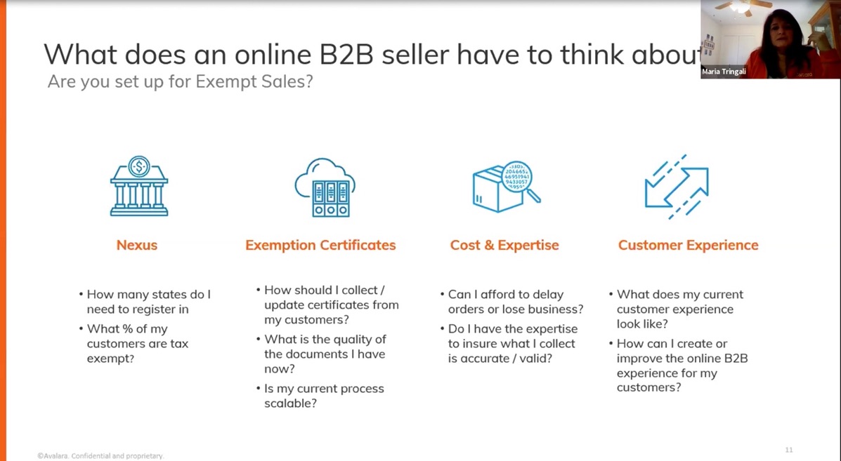 “It’s important because manufacturers, distributors, and B2B businesses are at very high risk for audit. Auditors know that getting a sales tax rate wrong is just a little bit of revenue, but not having an exemption certificate on file for a sale can be a lot more money to them. If you had a $10,000 item that you sold and you did not charge tax, and you can’t prove why you didn’t, you’d have to pay the full tax rate to the government.”When discussing how companies can improve their processes, she cites some of the things she sees in her experience. “The key things here is a poor process, for handling these exemption certificates for your exempt businesses, creates negative customer experiences.” This is why it’s important to know if you’re prepared for these situations.