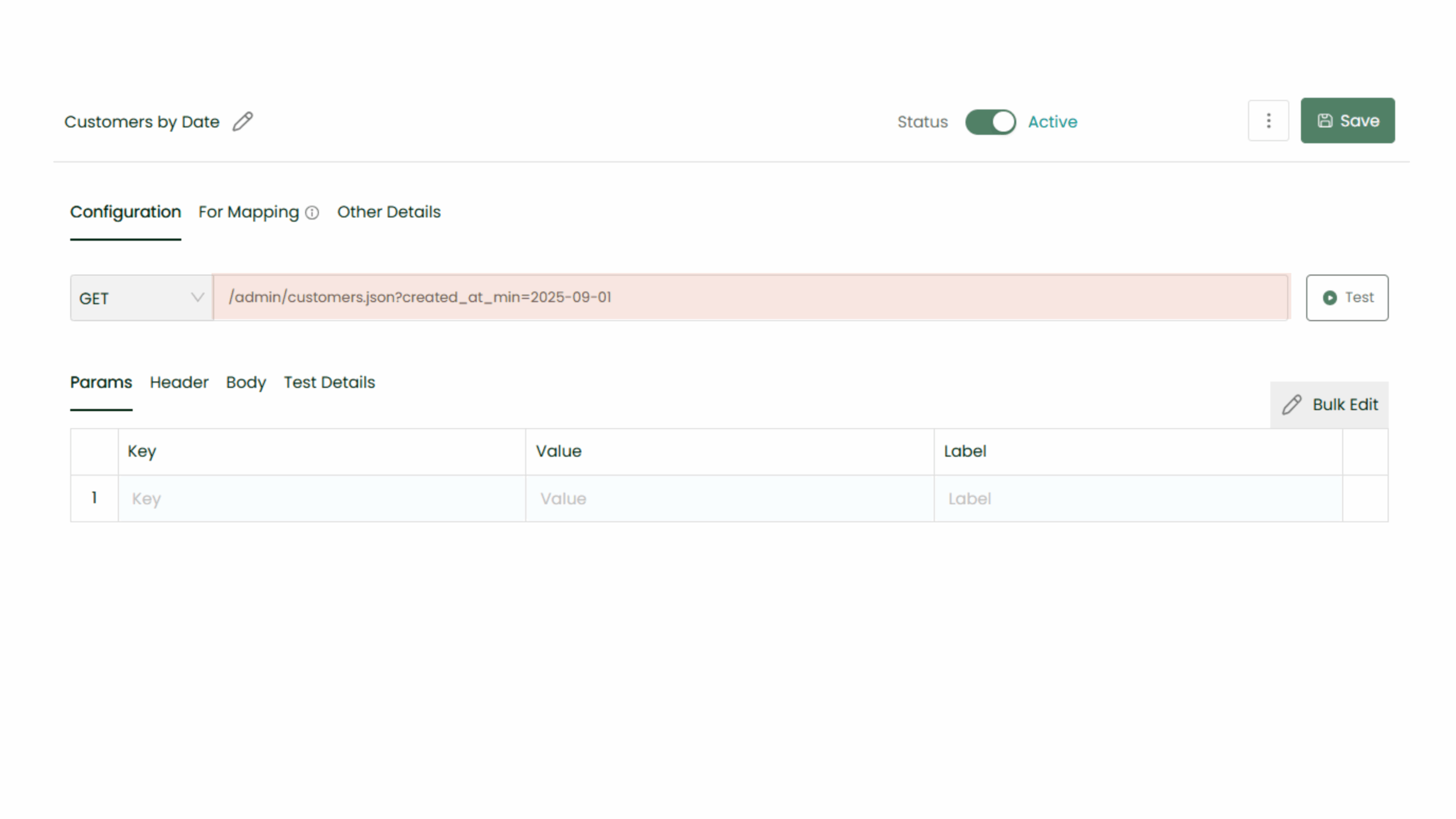 - Add the Relative URL → admin/customers.json?created_at_min=2025-09-01